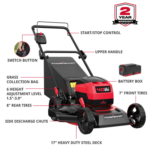 View full detailsPowerSmart 40V 17" Cordless Push Lawn Mower w/ 4.0Ah Battery & Charger MB2417A