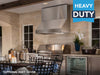 The Victory Prestige-48" range hood is specifically designed for BBQ's to give efficient coverage over your grill. In most cases, the lid of your BBQ will push the grill further from the wall, but with the Victory Prestige's range hood 32" depth, covering your grill is no problem.