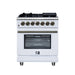 Forno Massimo 30-Inch Freestanding Dual Fuel Range with 4 Burners & 4.32 Cu. Ft. Convection Oven in White with Antique Brass Handle (FFSGS6125-30WHT)