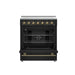 The Forno Paolo 30" Freestanding Electric Range in Black, the ultimate kitchen upgrade. This stunning range merges style and top-tier performance with a sleek black finish, complemented by a stainless steel surround on the ceramic glass cooktop. This design ensures even heat distribution across its 5 radiant elements with a total output of 7,800 watts.