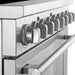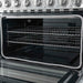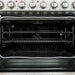 The Forno Paolo 36 Inch electric range in stainless steel combines power and style for the modern kitchen. Its smooth ceramic glass cooktop features five radiant elements with 9,800 watts of total output. The 5.44 cu. ft. true convection oven delivers fast, even results with a 1,200-watt fan and 3,000-watt high-powered baking and broiling elements. A hidden bake element, bright halogen lights, and a large viewing window add convenience. This freestanding electric range also includes a 100-watt warming zone and dual-element broiler for precise, high-heat cooking.