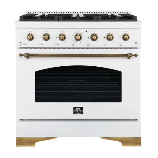 View full detailsForno Massimo 36-Inch Freestanding Dual Fuel Range with 6 Burners & 5.36 Cu. Ft. Convection Oven in White with Antique Brass Handle (FFSGS6125-36WHT)