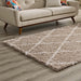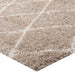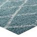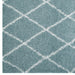 Make a sophisticated statement with the Toryn Diamond Trellis Shag Area Rug. Patterned with an elegant lattice design, Toryn is a durable machine-woven polypropylene rug. Complete with a jute bottom, Toryn enhances traditional and contemporary modern decors while outlasting everyday use. Featuring a stylish trellis design with a shag high pile weave of approximately two inches, this non-shedding, high density area rug is a perfect addition to the living room, bedroom, or family room. Vacuum regularly and spot clean with diluted soap or detergent as needed. Create a comfortable play area for kids and pets while protecting your floor from spills and heavy furniture with this carefree decor update for your home.