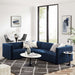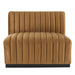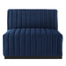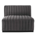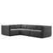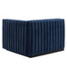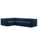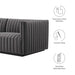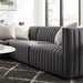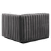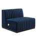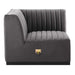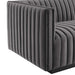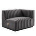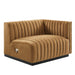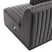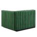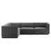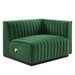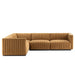 Modern appeal surrounds the Conjure Channel Tufted Performance Velvet Upholstered 4-Piece Sectional Sofa. Luxuriously soft, stain-resistant performance velvet upholstery covers dense foam padding and an individually wrapped spring coil system for a supportive living room sectional sofa that will become the go-to lounge spot for family and friends. Vertical channel tufting and subtle French piping adds depth to this vintage inspired sectional that effortlessly becomes the focal point in your living room. Solidly constructed from wood and plywood, this sofa features non-marking foot caps and boasts a matte black base. Versatile and elegant, this sectional sofa is ideally suited for a variety of decor styles in your living room, lounge, or home office. Each Seat Weight Capacity: 331 lbs.