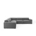 Create your custom living room and lounge area with the Restore Upholstered Fabric 5-Piece Sectional Sofa. The Restore Sectional Sofa appeals to minimalist elegance with a crisp design and broad lines accented with French piping details and polyester fabric upholstery. Dense foam padding and a pocket coil spring system in the cushions offer a luxe seating experience for your living room and lounge. The Restore Living Room Sectional Sofa is solidly constructed from plywood and wood with non-marking foot caps to protect flooring and connectors between modular pieces.