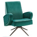 Integrate retro-modern style and contemporary functionality in your living room, entryway, or home office with the Superior Performance Velvet Swivel Chair. Fashioned in smooth stain-resistant performance velvet, this upholstered swivel chair features generously rounded armrests and a high-rise backrest, a commanding presence in the modern home. Constructed on a solid wood and plywood frame and meticulously contoured with dense foam padding, this sturdy swivel chair provides long-term comfort while you relax. Superior impresses with a 360-degree swivel, stainless steel base fitted with non-marking foot glides to protect your floors. Weight Capacity: 331 lbs.
