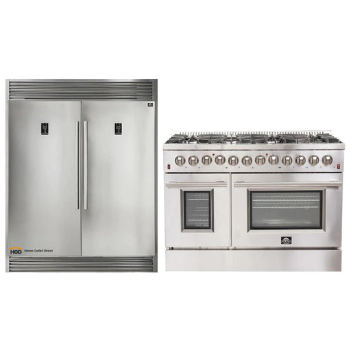 FornoForno 2-Piece Appliance Package - 48-Inch Dual Fuel Range & 60-Inch Pro-Style Refrigerator in Stainless Steel (FBDL-005-02CAUS)