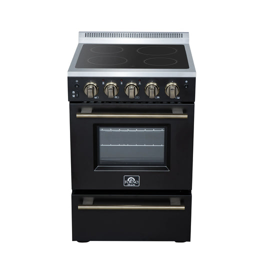 View full detailsForno Loiano 24-Inch Freestanding Electric Range in Black with Antique Brass Trim (FFSEL6069-24BLK)