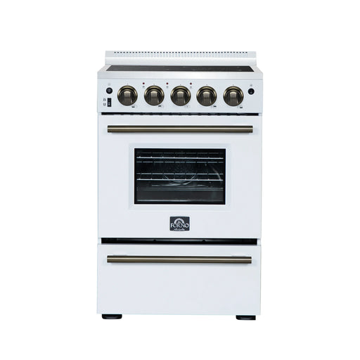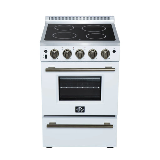 View full detailsForno Loiano 24-Inch Freestanding Electric Range in White with Antique Brass Trim (FFSEL6069-24WHT)