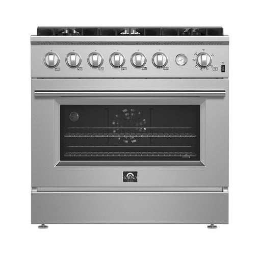 View full detailsForno Marco 36-Inch Gas Range 6 Gas Burners, 5.36 cu.ft. Convection Oven and Temperature Gauge in Stainless Steel (FFSGS6277-36)