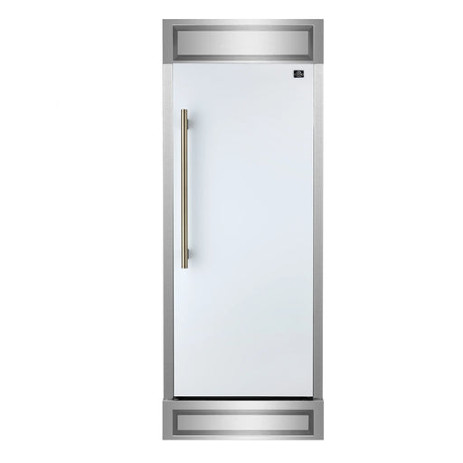 View full detailsForno Maderno 28-Inch Built-In 13.6 Cu.Ft. Convertible Refrigerator in White with Antique Brass Handle, Right Swing with Decorative Grille (FFFFD1722-32RMG-WHT)