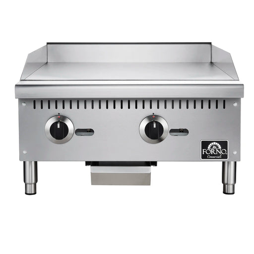 FornoThis 24 Inch Commercial Gas Griddle delivers 60,000 BTUs of cooking power with two burners and a heavy duty 1 inch carbon steel griddle plate. Buil...