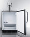 Inside, the SBC54OSBIADAWKDTWIN is designed to hold two 1/6 (sixtel) kegs (note: interior does not accommodate a standard half barrel). Automatic defrost ensures easy user maintenance, with a seamless interior for easier cleaning. The stainless steel floor offers added durability when loading kegs. This unit includes an interior light with an on/off rocker switch and a dial thermostat for easy and intuitive temperature management. A CO2 tank bracket is located inside, allowing you to keep the tank in the cabinet and save on exterior depth.
