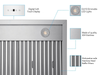 The Victory Maestro-36" wall mount range hood comes equipped with stainless steel filters and a stylish digital display. With adjustable chimney covers, this wall mount range hood can accommodate any standard 8'-9' ceiling. The display comes with a programmable delay shut-off timer so you can leave the wall mount range hood on after cooking. There is also a cleaning reminder that reminds you to clean the filters after 30 hours of use.