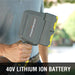 Run Time: 2 speeds with 40V 4.0Ah PowerSmart lithium battery, runtime up to 35-50 minutes on a fully charged battery.
