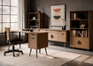 The Camden office collection features modern design and excellent functionality. In addition to a 60" desk, it includes standard and lateral file cabinets, a bookshelf with adjustable shelves, a unique credenza, and a comfortable office chair with an upholstered seat. The inset drawers, beveled top edges, and tapered steel legs give the set a clean, tidy feel.