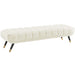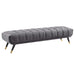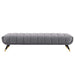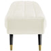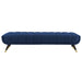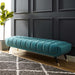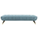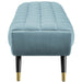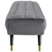 Embolden your living room décor with Adept Performance Velvet Accent Bench. Featuring a blend of chic, contemporary, and mid-century modern design, Adept's broad profile, generous tufting, stain-resistant performance velvet polyester upholstery, and subtle metal accents imbue rich detail and chic sophistication. Kick back and enjoy the plush comfort of the Adept bench while reading your favorite book or lounging with friends and family. Resting atop a splayed black birchwood frame with gold metal end caps, Adept is a striking addition to the home or apartment. Bench Weight Capacity: 440 lbs.
