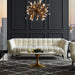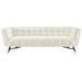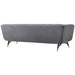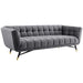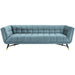 Embolden your living room décor with Adept Performance Velvet Sofa. Featuring a blend of chic, contemporary, and mid-century modern design, Adept's broad profile, deep seating, generous tufting, stain-resistant performance velvet polyester upholstery, flared armrests, and subtle metal accents imbue rich detail and chic sophistication. Enjoy the plush comfort of the Adept sofa while lounging with friends and family. Resting atop a splayed black birchwood frame with gold metal end caps, Adept is a striking addition to the home or apartment. Sofa Weight Capacity: 1322 lbs.
