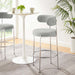 Experience luxury and modern sophistication with the Albie Fabric Dining Bar Stools - Set of 2. Upholstered in high quality fabric, this bar-height stool set exhibits a chic silhouette with its rounded seat and curved backrest, enhancing your dining or kitchen area's aesthetic. Resting on adjustable foot pins to provide stability and protect your flooring, the bases of these bar stools are crafted from sleek tubular metal that's the perfect complement to the luxe upholstery. The dense padded foam seat cushions and backrests offer a premium seating experience during everyday mealtime or entertaining. Minimal assembly is required with easy to follow instructions. Weight Capacity: 330 lbs.