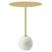 The Aliza Round Side Table boasts a fusion of modern aesthetics and retro vibes, becoming an undeniable focal point in any decor. This accent table features a round marble base that supports an iron rod and matching iron tabletop, creating a flawlessly integrated piece. Showcasing clean lines and sleek surfaces, the Aliza Sofa Table adapts with ease to diverse interiors. Whether it's in a small studio apartment, nestled beside an armchair, or thoughtfully placed next to a living room sofa, this side table enhances both style and functionality across multiple seating arrangements. Providing enough table space to hold your drink, a book, or even serve as an indoor plant stand, this accent table infuses retro interiors with both function and flair. Equipped with a non-marking pad to help protect floors from unwanted scratches. Assembly required. Weight Capacity: 99 lbs.
