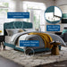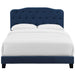 Refresh your bedroom space with the cozy elegance of the Amelia King Bed. Designed with chic style and contemporary charm, Amelia is upholstered in stain-resistant velvet polyester fabric and features a timeless button-tufted headboard, solid wood and LVL construction, and wood legs with non-marking caps. Complete with reinforced center beams for maximum stability, Amelia accommodates memory foam, spring, latex, and hybrid mattresses. A modern centerpiece to a master bedroom or guest suite, this upholstered bed frame effortlessly transforms bedroom dΓ©cor with its gentle curves and luxe look. Box spring required (not included). Bed Weight Capacity: 800 lbs.