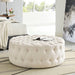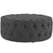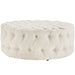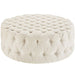 Inspire your décor with the Amour Round Ottoman. Fashionably chic with a refreshing look, Amour features a luxuriously tufted round design with dense foam padding, fine fabric upholstery, and non-marking black plastic legs. Rest your feet, display some favorite magazines, and accent your bedroom, living room, lounge or meeting area décor with this stylish well-designed addition to your modern home or office.