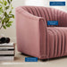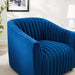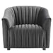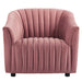 Invigorate your living room with the dynamic aesthetic of the Announce Channel Tufted Performance Velvet Armchair. Blending retro sensibilities and an organic silhouette, this contemporary living room armchair with vertical channel tufting is a vibrant presence in mid-century modern or eclectic decors. At the end of a long day, feel restored by the dense foam padding on the Announce Velvet Armchair. A practical and pleasing addition to your family room, home office, lounge space, library, or bedroom, this channel tufted reading chair is outfitted with a no-sag sinuous spring support and stain-resistant performance velvet. Legs have non-marking felt floor pads.