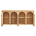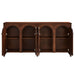 Elevate your living space with the Appia 4-Door Storage Cabinet, a fusion of modern design and timeless functionality. Crafted from durable MDF and adorned with a mango wood veneer, the Appia Sideboard features a mid-century wood grain that brings an organic warmth to any setting from the living space to the dining room. The cabinet's arched doors, an ode to contemporary elegance, open to reveal adjustable shelves and the seamless convenience of soft-close hinges. This versatile 4 door sideboard cabinet transcends its role as merely a storage cabinet, effortlessly serving as a refined buffet table, an upscale accent cabinet, or even a sophisticated TV stand for TVs up to 78 inches. Boasting non-marking adjustable levelers, the Appia Credenza grants stability and floor protection. Suitable for an array of spaces, from your dining area to the office, this 4-door cabinet with storage is designed to complement an elevated decor style. Enhance your home, office, or apartment with this modern cabinet statement piece designed for everyday use. Assembly Required. Tabletop Weight Capacity: 250 lbs. Please Note: When placing the TV directly on the unit, we recommend anchoring it in place.