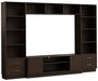 Overall: 121″W x 18″D x 85″H Media Console: 73″W x 18″D x 23″H Media Tower: 24″W x 14″D x 85″H Bridge: 73″W x 14″D x 13″H