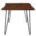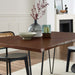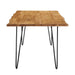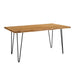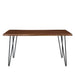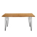 Sit amidst organic intrigue and retro style with the Ardor Rectangular Live Edge Dining Table. Featuring a one-of-a-kind raw edge tabletop crafted with a solid piece of acacia wood, this dining table is brimming with natural beauty. Comfortably accommodating six dining chairs, this 60" table rests on four powder-coated metal hairpin legs. This versatile dining table is ideal for everyday dining and entertaining and can also serve as a functional office desk. Due to the natural characteristics of the wood, each live edge table is unique. Includes non-marking foot pins to protect flooring. Assembly required.