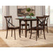 The Arendal dining collection is a great integration of rustic and industrial styles. With its Dark Burnished Oak (Brown) finish and custom metal cross-back chair accents in Antique Black, this is a versatile group that keeps it casual but makes a fantastic impression.
