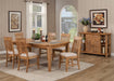 The Aspen collection features a rustic, modern design with industrial touches. Classy enough to dress up for the holidays but casual enough to hold your everyday meals, this group is prepared to meet your needs and your decorating aesthetic whatever they may be. Crafted from Acacia wood solids and features a Iron Brush Antique Natural (brown) finish. Chairs feature a seat height of 19"" and a upholstered polyester seat. Coordinates with other pieces in the Alpine Furniture Aspen dining collection sold separately.