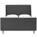 Update your bedroom with the clean lines and sleek modern style of the Aubree Upholstered Fabric Sleigh Queen Platform Bed. Featuring a classic wingback design, and sweeping sleigh form, the queen headboard, footboard, and sideboards of this platform bed frame come generously padded in dense foam offering comfort and support while relaxing in bed. Outfitted with tapered walnut-stained wood legs with non-marking foot caps, and a reinforced center beam, Aubree is upholstered in beautiful polyester fabric that grants soft texture. This queen platform bed comes with a wood slat support system that eliminates the need for a box spring. Aubree is a sturdy mattress foundation for memory foam, latex, innerspring, and hybrid mattresses. Bed Weight Capacity: 1322 lbs.