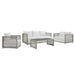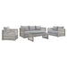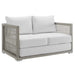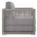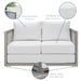 Weave conversational threads into a rollicking good time with Aura Outdoor Patio Collection. Aura comes with a synthetic gray-on-gray tone wicker rattan weave and a powder-coated aluminum frame that delivers a softly versatile outdoor collection that shifts to meet the needs of the moment. Outfitted with machine washable and fade resistant all-weather fabric cushions, and designed with an extra wide and deep body, Aura will make your outdoor spot the focal point of good memories and festive gatherings while enhancing your patio, backyard or poolside arena. Featuring thick cushions and chrome plated anti-skid feet, enjoy spacious seating and enhanced comfort with this reliable piece of outdoor furniture. Comes fully assembled.