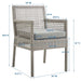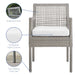 Weave conversational threads into a rollicking good time with Aura Outdoor Patio Collection. Aura comes with a synthetic gray-on-gray tone wicker rattan weave and a powder-coated aluminum frame that delivers a softly versatile outdoor collection that shifts to meet the needs of the moment. Outfitted with a machine washable and fade resistant all-weather fabric cushion, Aura will make your outdoor spot the focal point of good memories and festive gatherings while enhancing your patio, backyard or poolside arena. Complete with non-marking foot caps, enjoy spacious seating and enhanced comfort with this reliable piece of outdoor furniture.