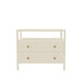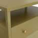 Enhance your bedside with the understated elegance of the Avery Nightstand. Available in two unique finishes: Coconut Milk and Olive Green. This nightstand features dimensions of 27.5"W x 18"D x 23"H and offers a spacious shelf for convenient storage of your nighttime essentials. The creamy Coconut Milk or earthy Olive Green finish adds warmth to any bedroom decor, while the brass-finished knobs and subtle wood texture infuse a touch of rustic charm. Assembly is quick and easy with included furniture leg glides and anti-tipping hardware, ensuring stability and reliability. Elevate your bedroom sanctuary with the timeless appeal of the Avery Nightstand, where simplicity meets sophistication.
