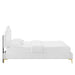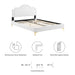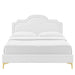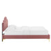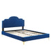 Usher quiet elegance into your master bedroom or guest room with the Aviana Performance Velvet King Bed. The gently undulating headboard with dense foam padding is accentuated by a precise nailhead trim, complementing mid-century modern, contemporary, or eclectic decors. Aviana brims with glam deco appeal, finely tailored in stain-resistant performance velvet. The well-constructed MDF frame provides a sturdy foundation for memory foam, innerspring, latex, and hybrid mattresses. This modern king bed features a well-crafted poplar wood slat support system, eliminating the need for a box spring, and a reinforced center beam with two support legs for enhanced stability. Aviana stands on gold metal legs with non-marking foot caps. Assembly required. Weight Capacity: 800 lbs.