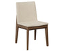 Transform your dining area with the Jefferson Dining Chair, a perfect blend of mid-century modern, Scandinavian, and mild urban industrial design. This chair features a plush, snow-white fabric seat and back, offering both style and comfort. The rich brown maple wood frame, stained in OCS-119 Cappuccino, adds a touch of elegance to any dining space.