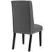 Explore the vast riches of a treasured heritage with the Baron Dining Chair. Designed to resonate elegance, Barons features a charming back and polished nailhead trimmed seat with a dash of grace and noble appeal. Complete with dense foam padding, fine fabric upholstery, solid wood frame and legs with non-marking foot glides, Baron is a stylish dining chair perfect for the modern home.