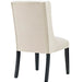 Bestow splendor with Baronet. Charm and elegance adorn this luxurious button tufted dining chair complete with sleek curves and dignified form. Featuring dense foam padding, fine fabric upholstery, a solid wood frame, and non-marking foot glides, Baronet is a stylish dining chair perfect for the modern home.
