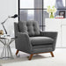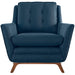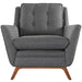 Dominate your décor with the expertly designed Beguile Collection. Exquisitely crafted with gently sloping arms, comfortable plush seat cushions, and adeptly tufted back cushion buttons, Beguile is a delightful collection that reinvents mid-century style. Outfitted with a solid wood walnut-stained base and fine fabric, Beguile comes perfect for living room, lounge and meeting areas.