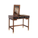 The Belham bedroom vanity is a compact vanity with a flip-up mirror for a variety of makeup or jewelry functionality . Simplify your morning routine, retract the top of this vanity table to reveal a beautiful mirror and a selection of organized felt lined compartments, making everything available when you need it. When you’re finished, fold it back down to use it as a desk when its time to get some work done. Made of durable Mahogany wood solids and veneer, this bedroom vanity will adorn your home for years to come. Light assembly required.