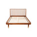 Stylistically modern and structurally sound, crafted from Mahogany wood solids & rattan, the Belham panel bed in a warm dark Walnut (Brown) finish will keep your bedroom dreamy whether you're looking at it or sleeping on it. The platform design removes the bothersome need for a box spring, making it easy to place a mattress of your choice (not included) directly onto the frame. This bed fluidly fits in with a variety of aesthetics and color schemes to compliment your bedroom setting.