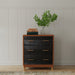 Transitional styling, the Belham 3 Drawer Chest combines function and a beautiful design. The 3 storage drawers feature rattan drawer fronts and gold handles. Mahogany wood, a dark walnut finish, and gold feet the piece a distinctive look. Coordinates with other pieces from the Alpine Furniture Belham bedroom collection sold separately.