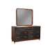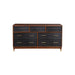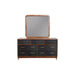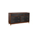 The Belham Dresser stands out in any bedroom. With 7 drawers, this piece provides ample storage. Distinctive rattan drawer fronts are complimented by gold hardware. The case is made from Mahogany solids and veneers, finished in rich dark walnut. The gold metal feet give the piece a nice transitional feel. Coordinates with other pieces from the Alpine Furniture Belham bedroom collection sold separately.