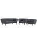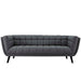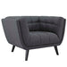 Generously update your decor with Bestow. Uniquely designed with a striking broad profile, Bestow comes finely upholstered in polyester fabric with dense foam padding and elegant button tufting. Sturdily positioned on splayed and tapered black finish wood legs with non-marking foot caps, Bestow boasts a bountiful living room seating design brimming with possibilities. With ample seat depth and overscaled frame, invite all your guests to sit comfortably in this 12" high back and arm rest collection perfect for mid-century, modern farmhouse or contemporary decors.