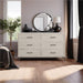 Upgrade your bedroom with the Bradley Dresser, a seamless fusion of modern contemporary style and practical features. Crafted with precision from American White Oak Veneers and Poplar Solids, this dresser boasts an Antique White finish, adding a touch of timeless elegance to your space. The dresser comes with a removable jewelry tray for convenient organization, and light assembly of the metal legs with levelers ensures a stable foundation. The English Dovetailed Drawers and Ball Bearing Drawer Glides guarantee durability and smooth operation. Felt-lined top drawers provide a gentle touch for your delicate items, while Cedar Plank Bottom Drawers offer a fresh storage solution. Elevate your bedroom decor with the Bradley Dresser – where sophistication meets everyday functionality.