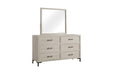 Upgrade your bedroom with the Bradley Dresser and Mirror combo, a seamless fusion of modern contemporary style and practical features. Crafted with precision from American White Oak Veneers and Poplar Solids, this dresser boasts an Antique White finish, adding a touch of timeless elegance to your space. The dresser comes with a removable jewelry tray for convenient organization, and light assembly of the metal legs with levelers ensures a stable foundation. The English Dovetailed Drawers and Ball Bearing Drawer Glides guarantee durability and smooth operation. Felt-lined top drawers provide a gentle touch for your delicate items, while Cedar Plank Bottom Drawers offer a fresh storage solution. Elevate your bedroom decor with the Bradley Dresser and Mirror – where sophistication meets everyday functionality.