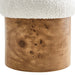 Discover the unmatched comfort and versatility of the Breeze Upholstered Ottoman, a masterpiece that effortlessly blends modern design with timeless materials. Crafted with a blend of woods and accentuated by a rich burl wood veneer, this accent ottoman offers a foundation of strength and beauty. Its top, featuring plush boucle fabric upholstery over dense foam padding, embraces a distinctive, mushroom-like silhouette, harmonizing aesthetic appeal with ergonomic comfort. This unique cylindrical shape makes it a multifunctional gem, perfect as a footrest for your couch, an ottoman side table in the living room, or a cozy stool for extra seating space. The Breeze Modern Round Mushroom Ottoman, with its soft and elegant design, is a stylish solution for contemporary homes, offices, and apartments. Ships fully assembled and includes plastic glides to protect flooring from scuffs and scratches. Weight Capacity: 300 lbs.