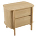 Revolutionize your bedroom or apartment decor with the Cadence 2-Drawer Nightstand. This modern nightstand is perfect at your bedside, offering both style and functionality. The unique design features rounded corners and fluted details, adding a stylish flair to any space. Crafted from high-quality materials such as rubberwood, particleboard, and MDF, the Cadence boho nightstand is designed for longevity and showcases a beautiful wood grain laminate, enhancing the organic aesthetics of your bedroom or living space. This two drawer nightstand features full-glide drawers, providing ample space for storing books and decorative items or keeping nighttime essentials out of sight. It includes non-marking foot glides for added stability. The Cadence fluted nightstand is a multi-functional piece that elegantly combines practicality with elegance and is versatile enough to serve as an open shelf side table, living room end table, or small accent table. Assembly required. Tabletop Weight Capacity: 79 lbs. Each Drawer Weight Capacity: 22 lbs.